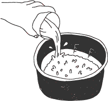 浄水器の水かミネラルウォーター(軟水)を入れ炊飯します。